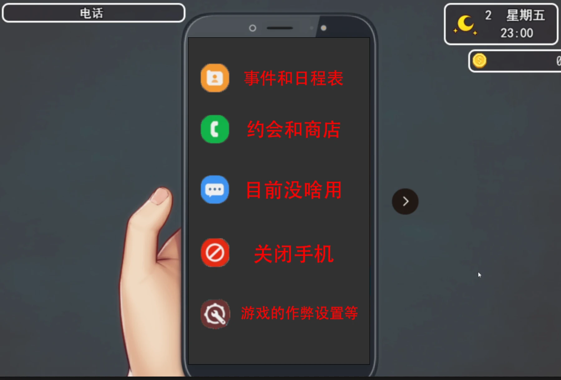 键盘P键是手机,这是最重要的操作。打开手机你能看到: